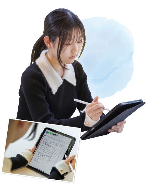 通学型の授業では、授業効率を高めるためにタブレットを活用するほか、